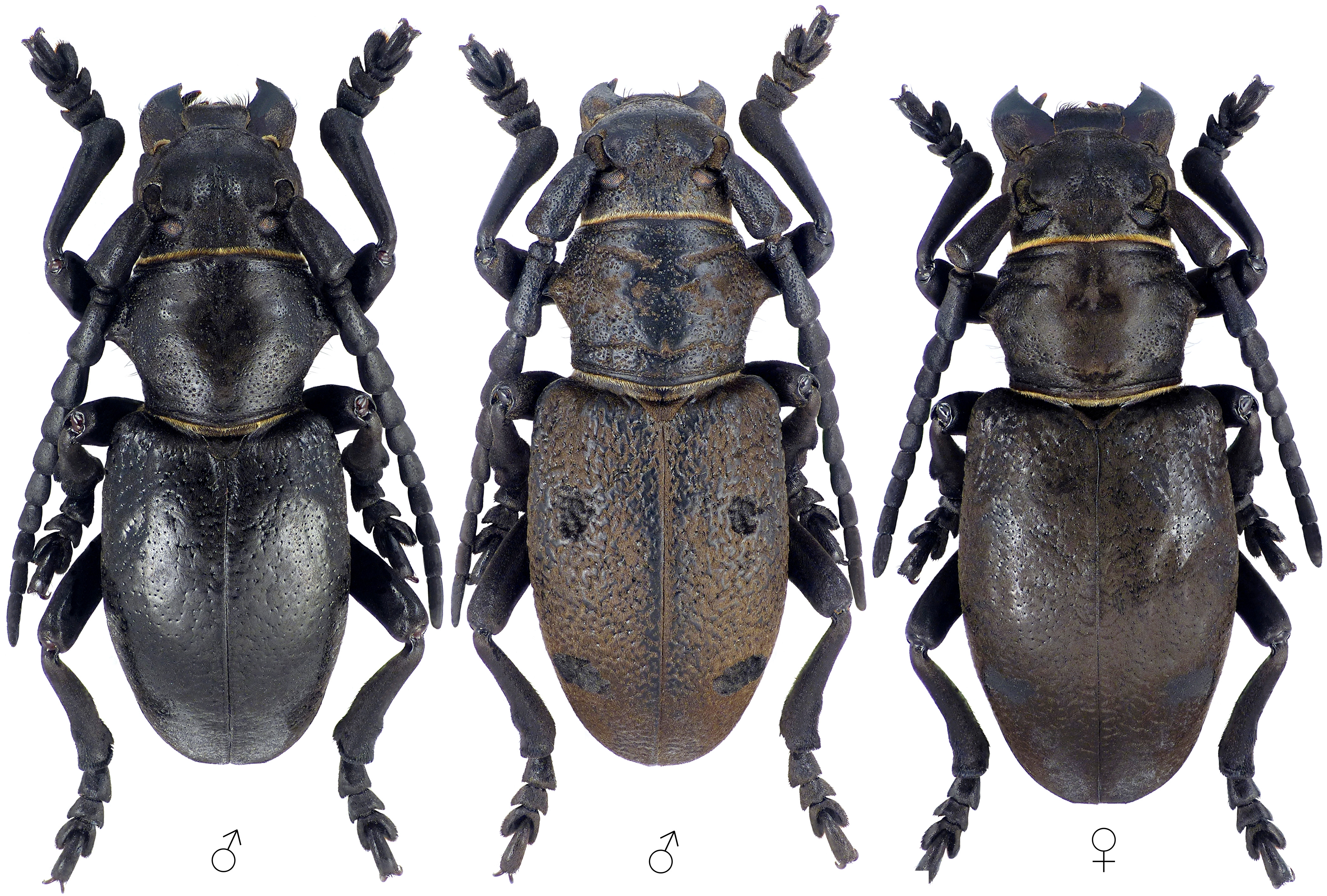 The depicted mounted beetles (brown male) was collected on the host plant (Astragalus sp.) in Neraida (Νεράιδα) village environs (1500-1600 m a.s.l., Pindus Mts., Trikala, Thessaly, Greece) on May 26, 2018. The black male and female were reared from larvae found in Astragalus roots in the same locality. The living beetle was photographed on the touristic path connecting Voutsikaki Agrafon (Βουτσικάκι Αγράφων) and Angonas (Ανγκώνας) peaks (Pindus Mts., Morfovouni - Lake Plastiras municipality, Karditsa regional unit, Thessaly, Greece) on May 25, 2022.Collected by David Navrátil and Daniel Rydzi
