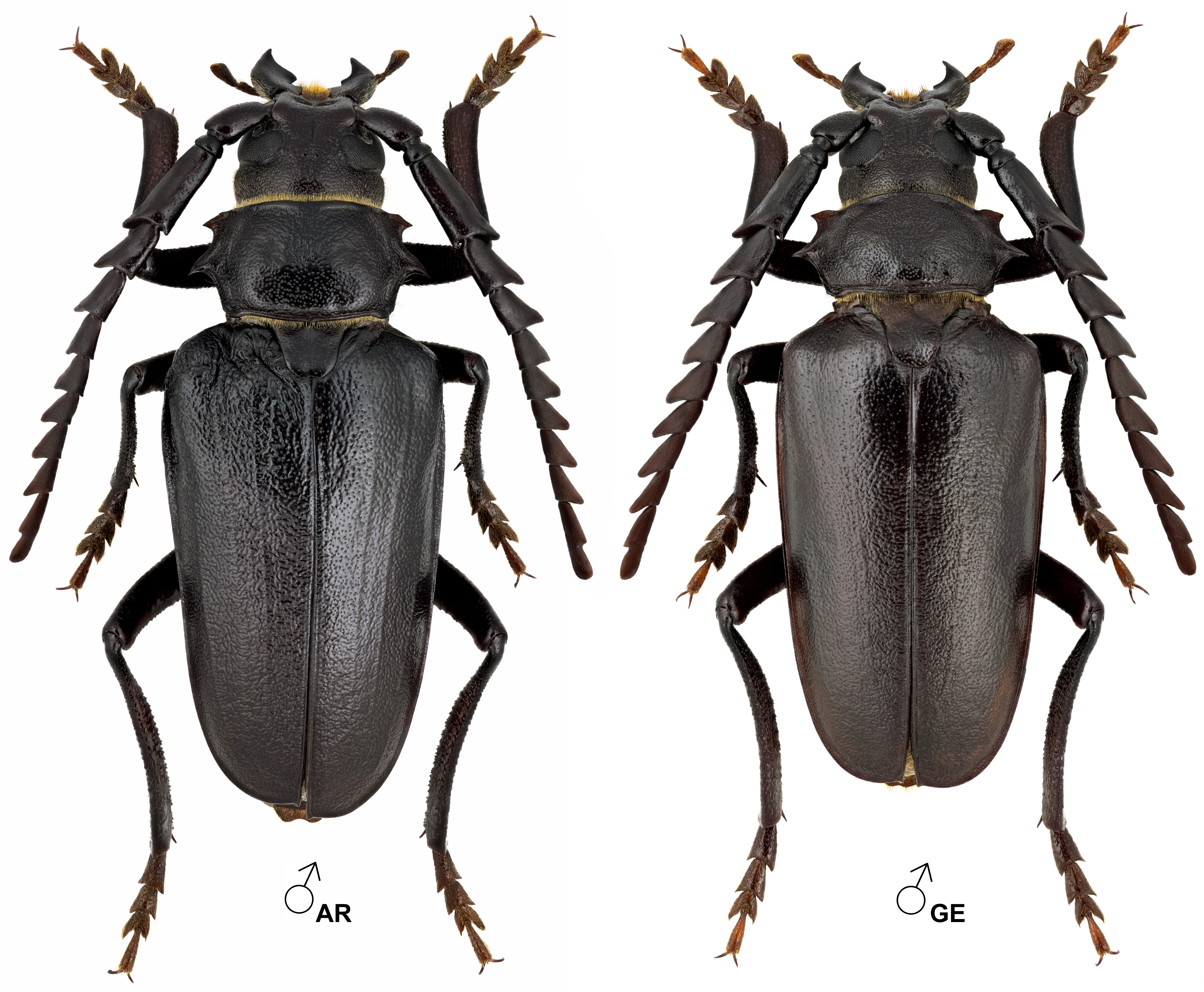 The depicted male beetles were collected in: (AR) - 3-4 km SW of Masis (Մասիս) town (Ararat Province, Armenia) on June 13-16, 2006; (GE) - Vashlovani National Park (Kakheti region, Georgia).Collected by Artem Rubenian and Walter Grosser