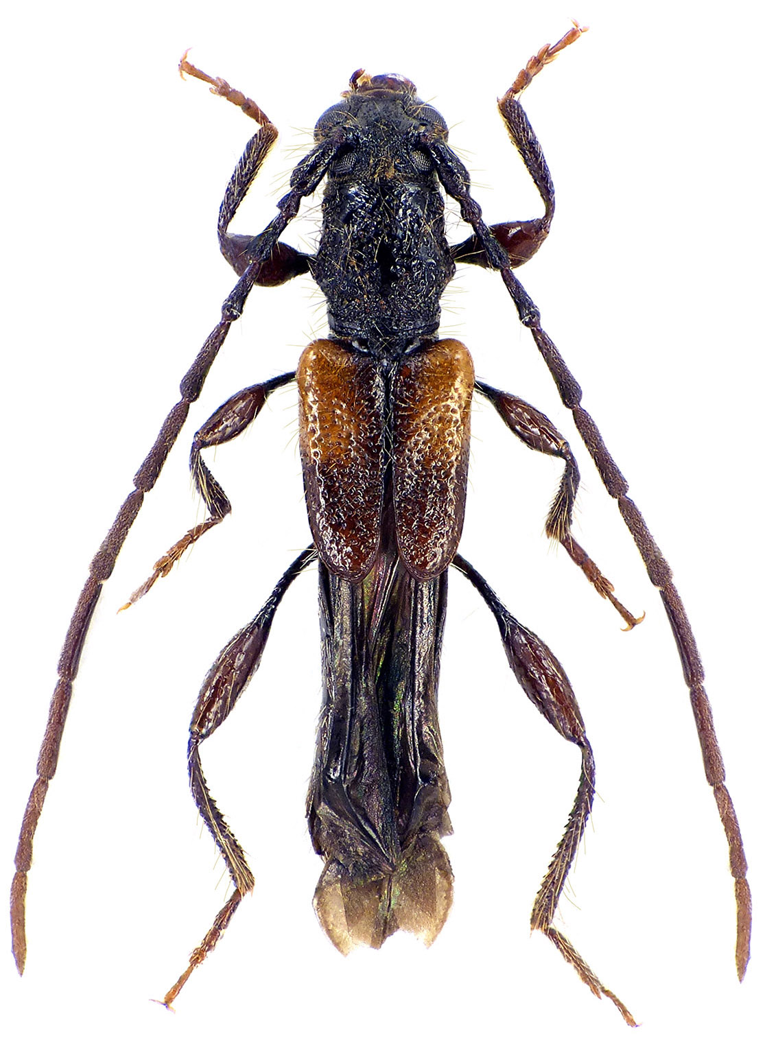 distributed M. kiesenwetteri. Larvae develop in thin twigs of deciduous shrubs and trees, life cycle is one to two years, adults can