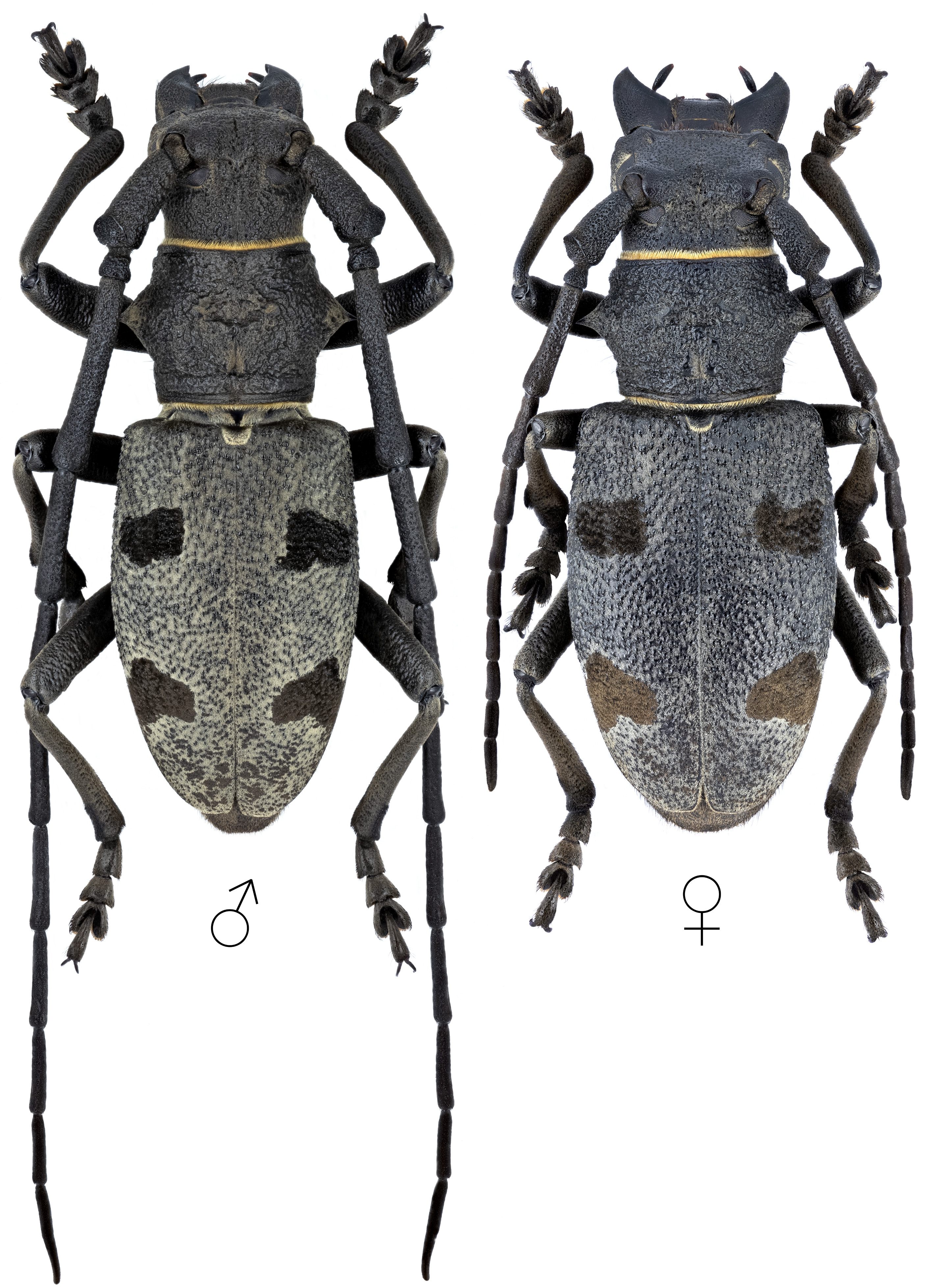 Body length: 22 - 37 mm Life cycle: several years Adults in: April - October Host plant: polyphagous in deciduous trees, prefers Fagus Distribution: Bosnia Herzegovina, Croatia, Serbia & Montenegro