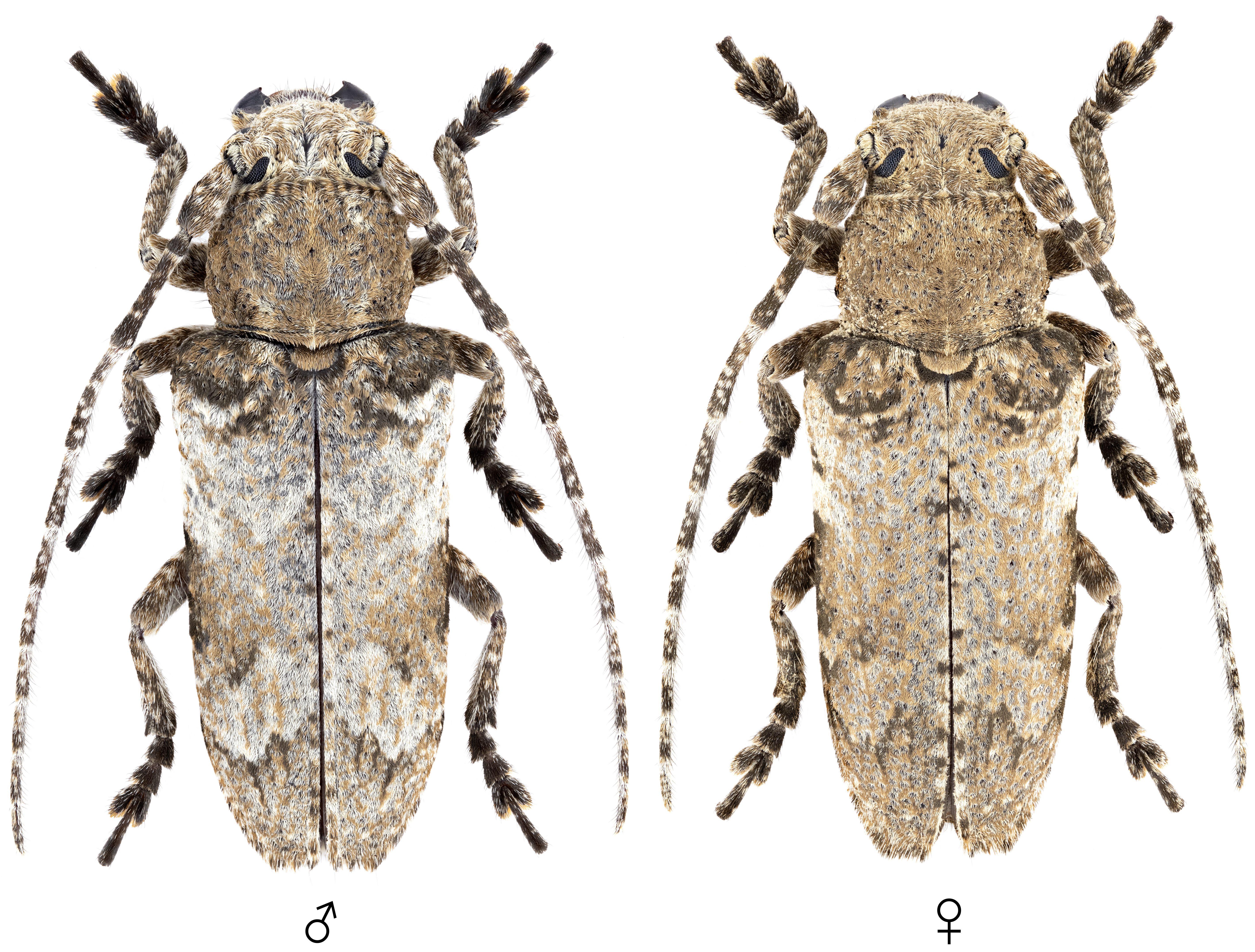 The mounted beetles were reared from larvae found in: ♂ - Ceratonia branch 2 km NE of Agios Georgios Pegeias (39 m a.s.l., Paphos district, Cyprus) on April 15, 2022; ♀ - Quercus branch in Cavtat environs (Konavle municipality, Dubrovnik-Neretva county, Dalmatia, Croatia) on July 28-30, 2014.The living specimens were: (TN) - found inside thin branches of Ficus carica on the coast of Agios Leon (Greece) in summer 2014; (PJ) - reared from dead branches of Ficus carica collected in Nin environs (Zadar county, Dalmatia, Croatia) in summer 2013.